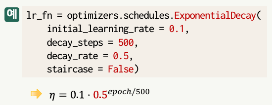 tf.keras.optimizers.schedules모듈의ExponentialDecay클래스 인스턴스 활용