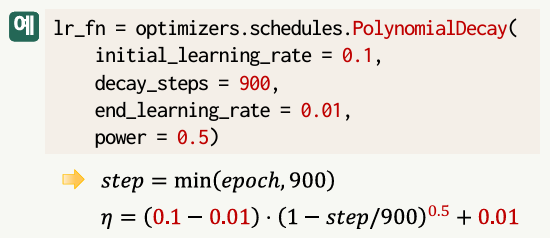 tf.keras.optimizers.schedules모듈의PolynomialDecay클래스 인스턴스 활용