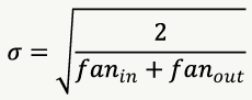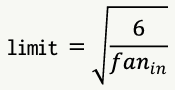 - fan-in을 바탕으로 하여 정해지는 랜덤 값에 따라 가중치 초기화