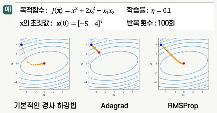 - 학습률을 적응적으로 적용하기 위한 최적화 방법