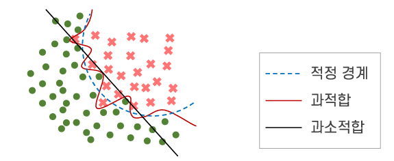 - 규제: 모델의 복잡도가 필요 이상으로 높아지지 않도록 함